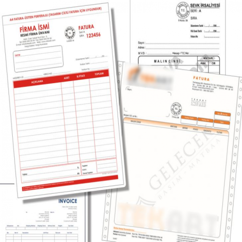 A5 ve A4 faturalar isteğe bağlı olarak **numaratörlü**, **perforajlı** veya **otokopili** şekilde hazırlanır. Numaratörlü sistem sayesinde düzenli takip sağlanırken, perforaj uygulaması fatura yapraklarının kolayca ayrılmasını sağlar. Otokopili faturalarda ise karbon kullanmadan tüm kopyalara aynı netlikte baskı geçişi elde edilir.