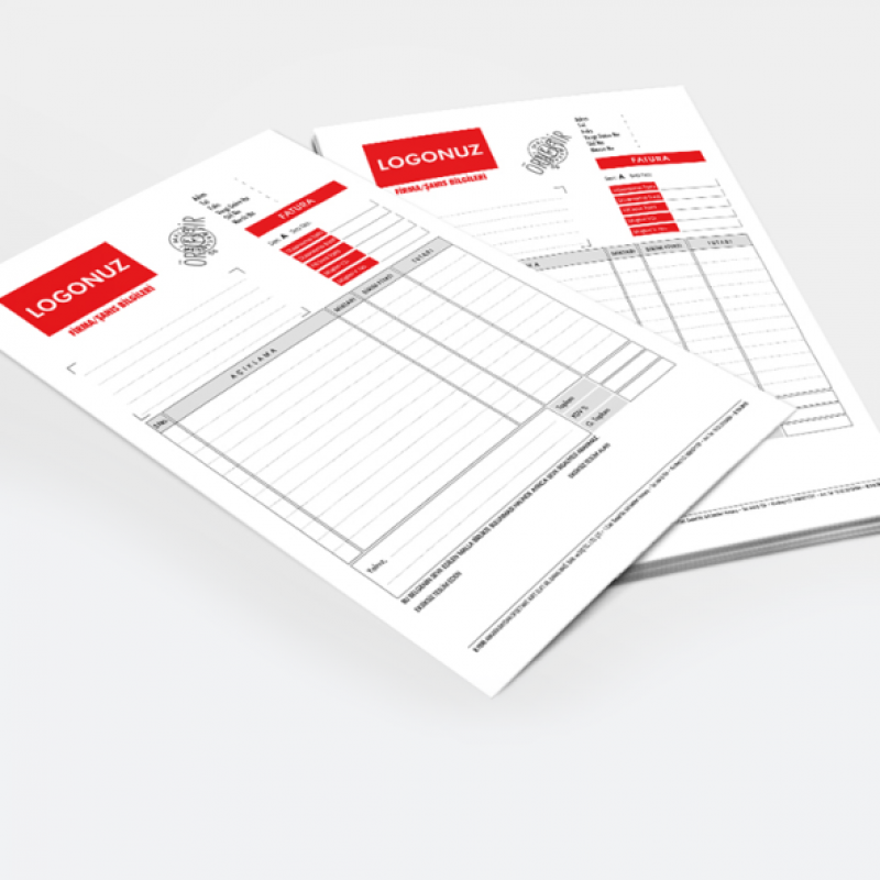 Faturalar, firmanıza özel tasarlanabilir. Logo, adres, iletişim bilgileri, vergi dairesi, unvan ve kurumsal renkleriniz baskı tasarımıyla birleştirilir. Bu sayede tüm ticari belgelerinizde profesyonel bir imaj ortaya çıkar. İsteğe bağlı QR kod, barkod ve özel güvenlik detayları da eklenebilir.