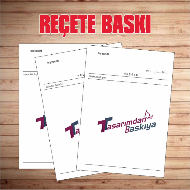 Reçete baskı, doktorların ve sağlık personelinin hastaya yazdığı ilaçları veya tedavi planlarını iletmek için kullandığı resmi evrakların profesyonel baskı sürecidir. Genellikle A5 veya A6 boyutunda hazırlanır. 50’lik veya 100’lük bloknot şeklinde üretilebilir. Her sayfanın alt kısmında doktorun adı, ünvanı, iletişim bilgileri ve kurum logosu yer alır.