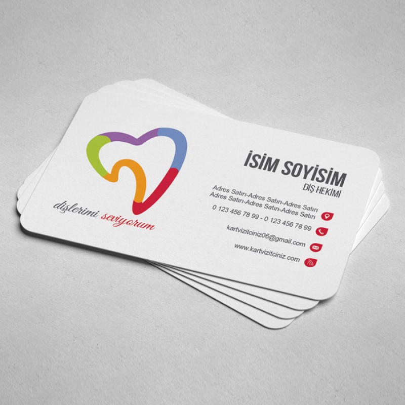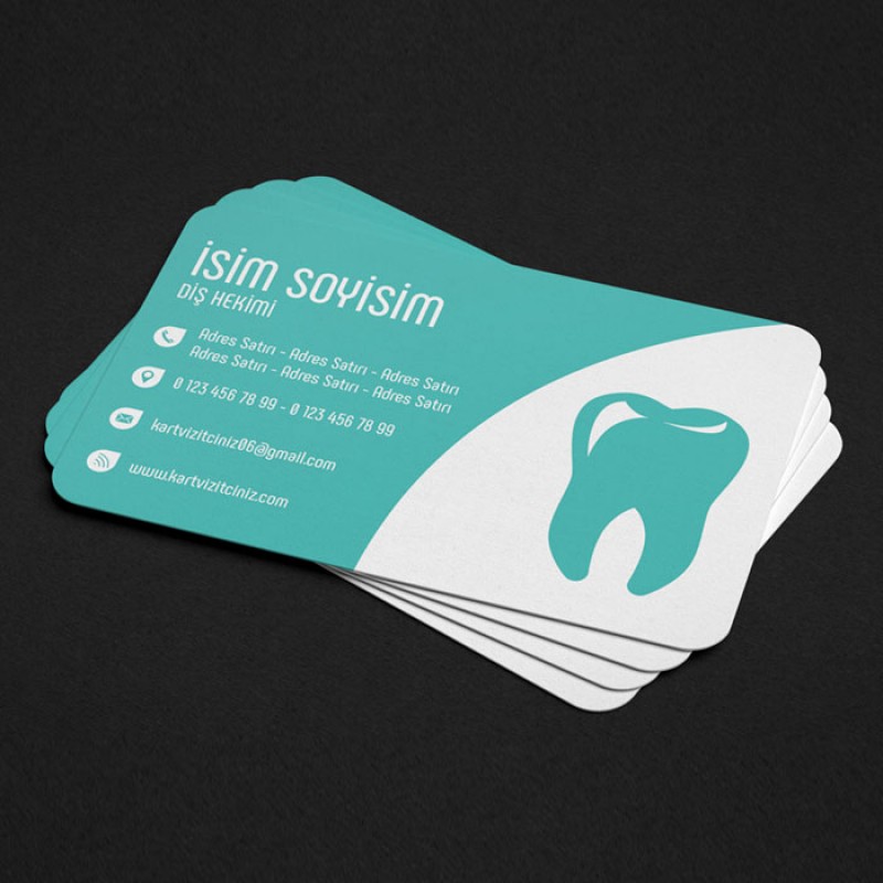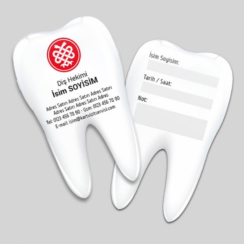 Diş hekimlerinin yaratıcı kartvizitleri arasında en çok tercih edileni ise diş şeklinde olan bir kartvizittir. Dış görünüşü tam bir diş gibi görünen bu kartvizit üzerinde diş hekiminin bilgilerini içermektedir. Muayene yerinin adresi, telefonu, e – posta adresi gibi bilgiler bulunmaktadır. Diş hekimi kartvizitlerinde aynı zamanda çok eğlenceli kartvizit çeşitleri bulunmaktadır. Bunlardan kendinize uygun olanını seçerek kartvizit sahibi olabilirsiniz. Ya da kendi yaratıcı kartvizitinizi tasarlayarak bunu kartvizit olarak bastırabilirsiniz. Diş hekimi kartvizit modelleri tasarlamak konusunda sınır yoktur. Diş hekimi kartvizit modelleri sayesinde daha fazla müşteri sahibi olabilirsiniz. Kartvizitiniz sizin kişiliğinizi yansıtabilir.