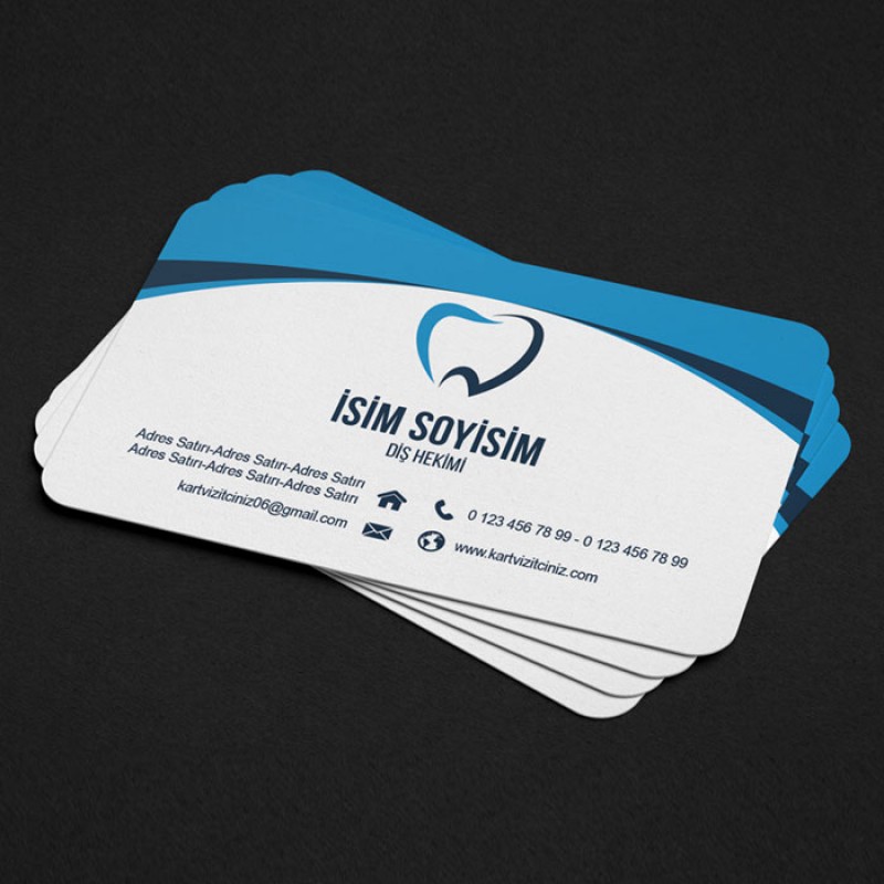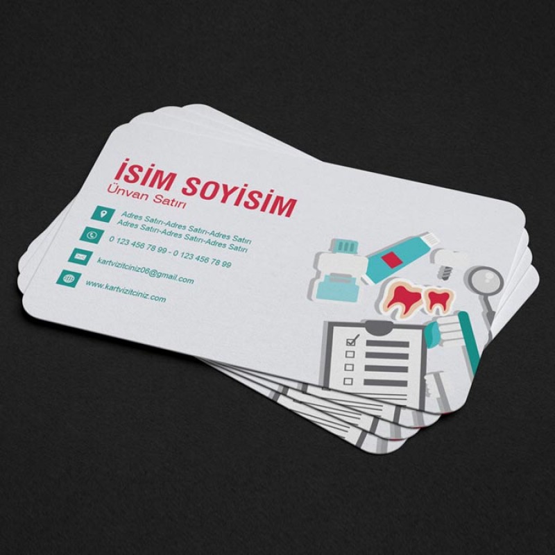 Diş hekimi kartvizitleri iyi tasarımların olduğu bir diğer kartvizit kategorilerinden' dir. Diş hekimleri kartvizitleri kendi açtıkları muayenelerinin tanıtımını yapmak ve müşteri çekmek için kartvizit sahibi olurlar. Çoğunlukla beyaz temalı bir kartvizit kullanırlar. Kartvizitlerinin beyaz olmasının nedeni ise hem sade ve anlaşılır olması hem de meslekleri ile ilişkili bir renk olmasıdır. Diş hekimleri alışılagelmiş şablonlardan kartvizit çıkartabilirler. Ya da kendi çizimleri ile tasarımlarını yaptıkları kartvizit çıkarabilirler. Bu sektörde çalışanların da çok yaratıcı ve mizahi kartvizitleri bulunmaktadır.Diş hekimi Kartvizitleri, Diş Hekimi Kartvizit Modelleri, Diş Hekimi Kartvizit ÖrnekleriDiş hekimi Kartvizit Fiyatları,