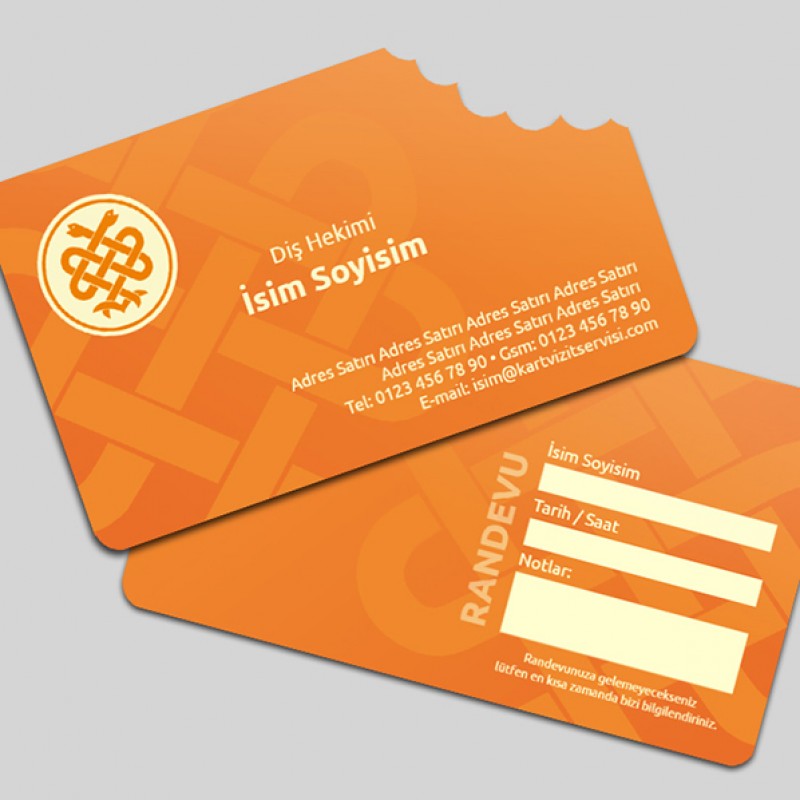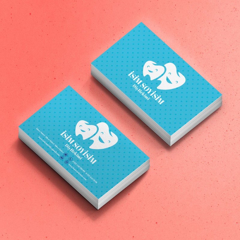 Diş hastanesi kartvizit modelleri, brüt 1000 adet ve katları şeklinde üretilmektedir.